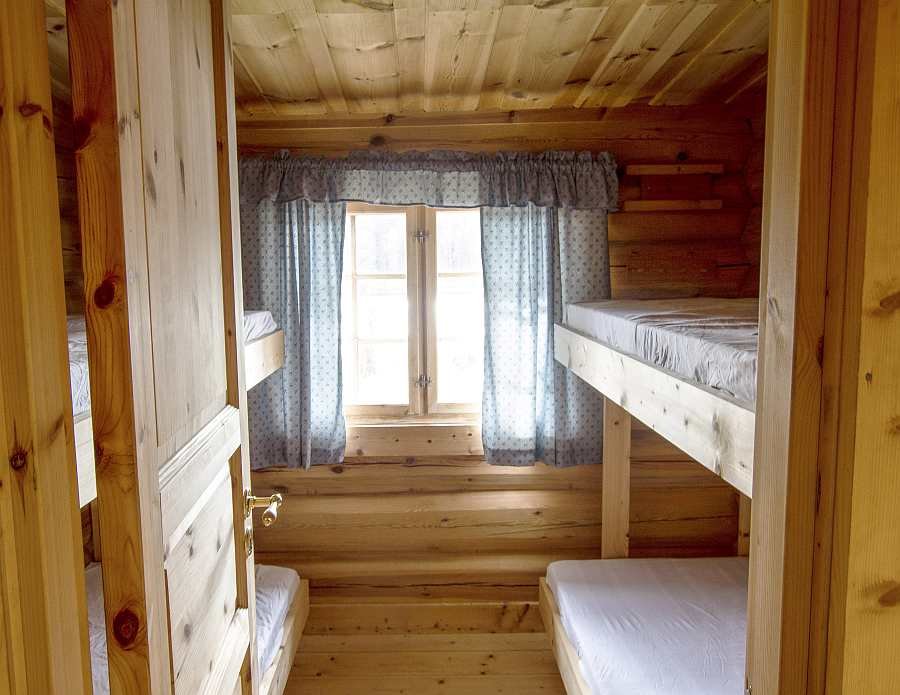 Schlafen: 1 Schlafzimmer mit 2 Etagenbetten und 1 Schlafzimmer mit 1 Etagenbett und 1 Einzelbett. Wohnen: Urgemütlicher Wohnbereich mit bequemer Sitzecke und offenem Kamin. Separater Essbereich mit großem Esstisch, Holzofen. Kochen: Küchenzeile offen zum Wohnbereich, komplett mit Geschirr, Töpfen, Besteck etc. ausgestattet, 3-Flammen-Gasherd, Kühlschrank (gasbetrieben) Spüle mit Wasser-Vorratsbehälter (kein fließend Wasser). Bad: Waschraum im Haupthaus: Waschbecken mit Wasser-Vorratsbehälter (kein fließend Wasser), Sauna (holzbeheizt). Sonstiges: Außenbereich mit Gartentisch und Stühlen, Grill. Entfernungen dieser Unterkunft