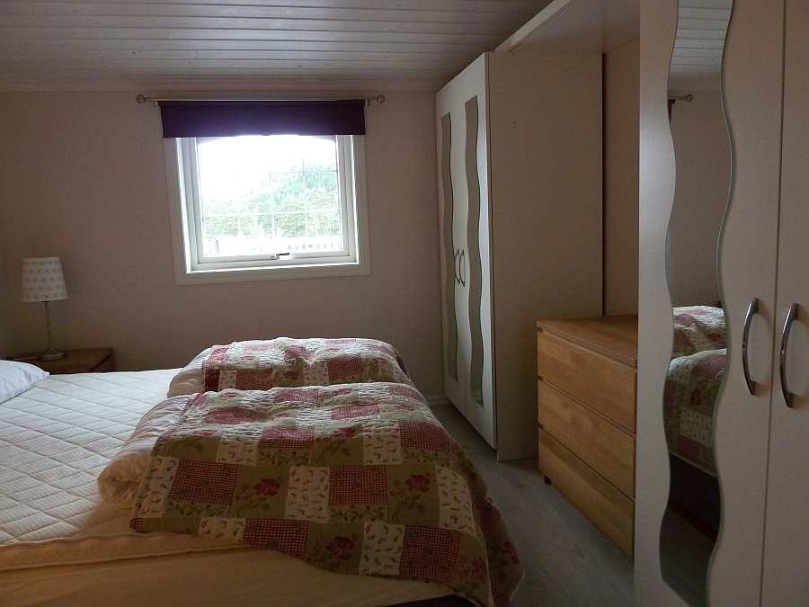 Schlafen: 1 Schlafzimmer mit 2 Einzelbetten (auf Wunsch zum Doppelbett zusammenschiebbar), Wohnen: Freundlicher, heller, großer Wohnbereich mit direktem Blick auf den Fjord und Zugang zur großem Terrasse zur Fjordseite. Kochen: Komplett ausgestattete, moderne Studioküche, offen zum Wohnbereich. 4-Platten-Ceranherd, Dunstabzug, Backofen, Spülmaschine, großer Kühlschrank, Gefrierschrank, Mikrowelle, Kaffeemaschine, Wasserkocher, Mixer und Toaster. Bad: Großes, modernes Badezimmer mit Dusche, Waschbecken und WC. Weiterhin befindet sich hier ein Whirlpool. Fußbodenheizung. Sonstiges: Große Veranda mit Blick auf das Wasser. Gartentisch mit Stühlen, Sonnenschirme, Sonnenliegen vorhanden. Gas-Grill. Entfernungen dieser Unterkunft