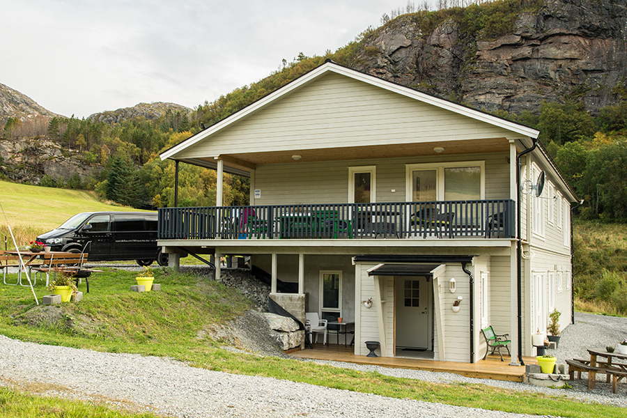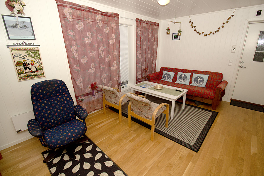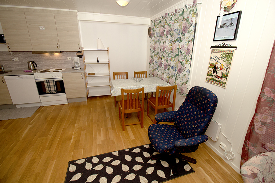Schlafen: 1 Schlafzimmer mit einem norwegischen Familienbett und einem Einzelbett. Wohnen: Gemütliches Wohnzimmer mit E-Heizung, Essecke, TV/DVD und Radio. Kochen: Voll ausgestattete Wohnküche mit Kochfeld, Backofen, Geschirrspüler Kühlschrank, Mikrowelle und Kaffeemaschine. Bad: Ein Bad mit Dusche, WC und Waschbecken. Entfernungen dieser Unterkunft